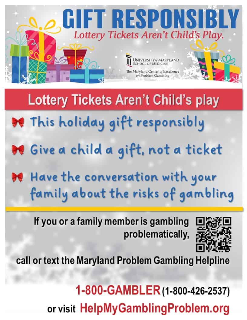 This season, gift responsibly – give a child a gift, not a ticket. Avoid gifting lottery tickets to any child under 18. And have the conversation with your family about the risks of gambling.
