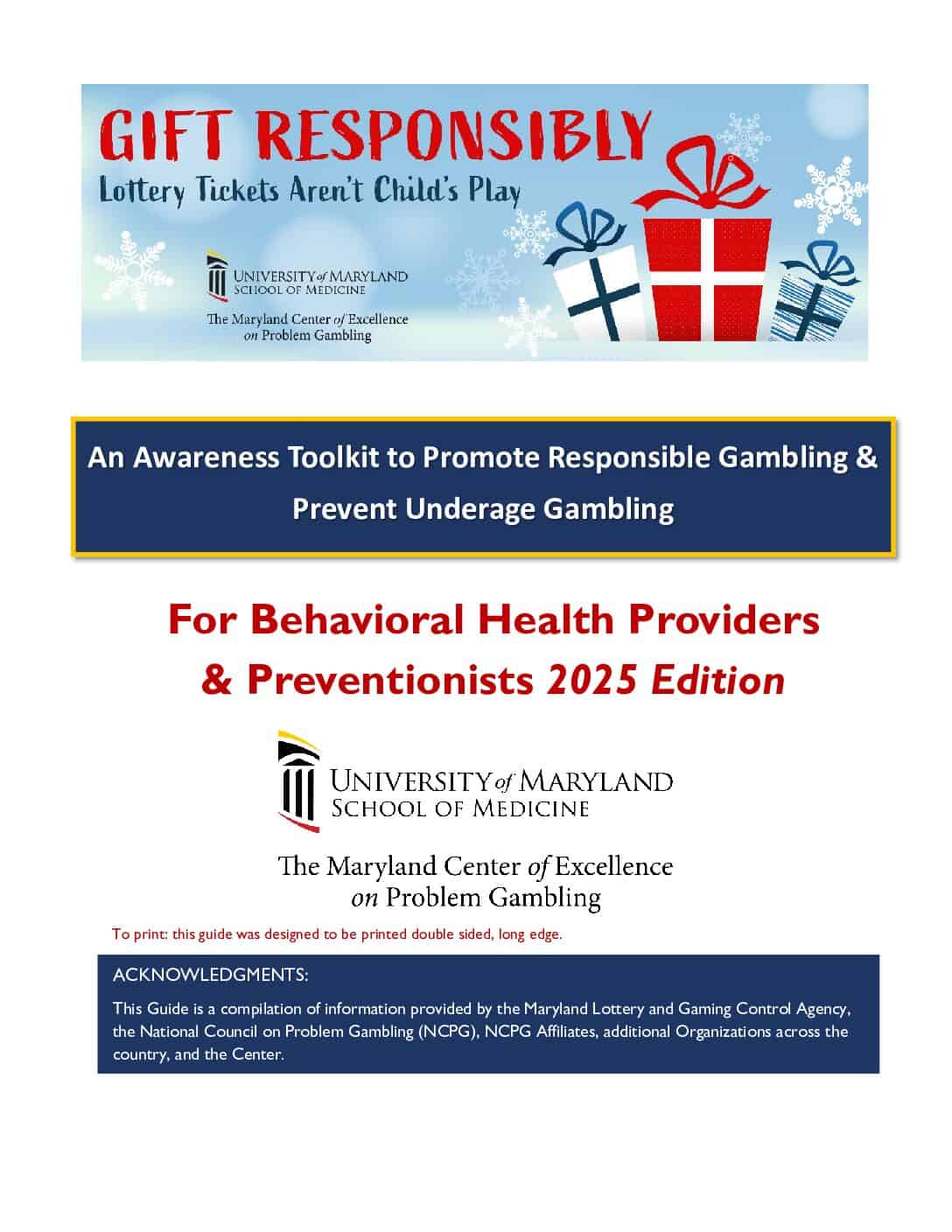 An Awareness Toolkit to Promote Responsible Gambling & Prevent Underage Gambling for Behavioral Health Providers & Preventionists