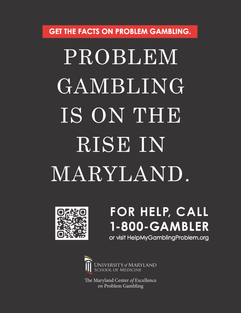 - Add the Maryland Helpline 1-800-GAMBLER number and help seeker website (helpmygamblingproblem.org) to all your messaging.