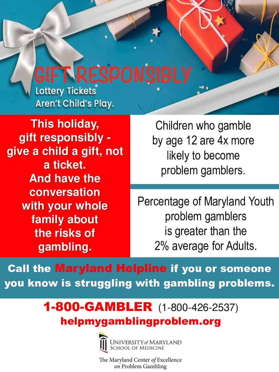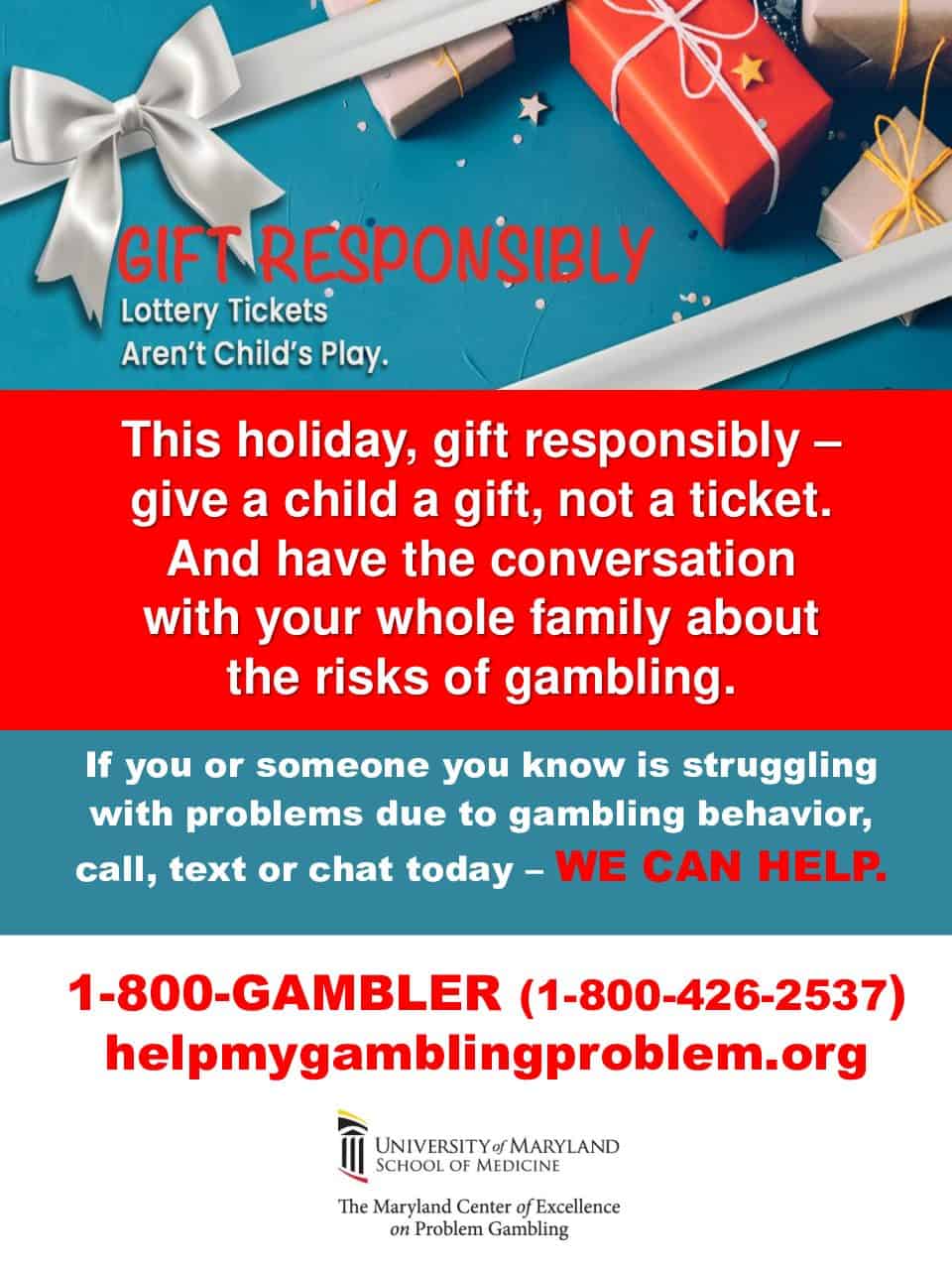 Many view gifting lottery tickets as harmless fun for any age that adds a touch of excitement in the anticipation of possibly winning money. However, research shows that children who gamble – including the use of lottery scratch off tickets – are four times more likely to become problem gamblers (Felsher, et al., 2010).