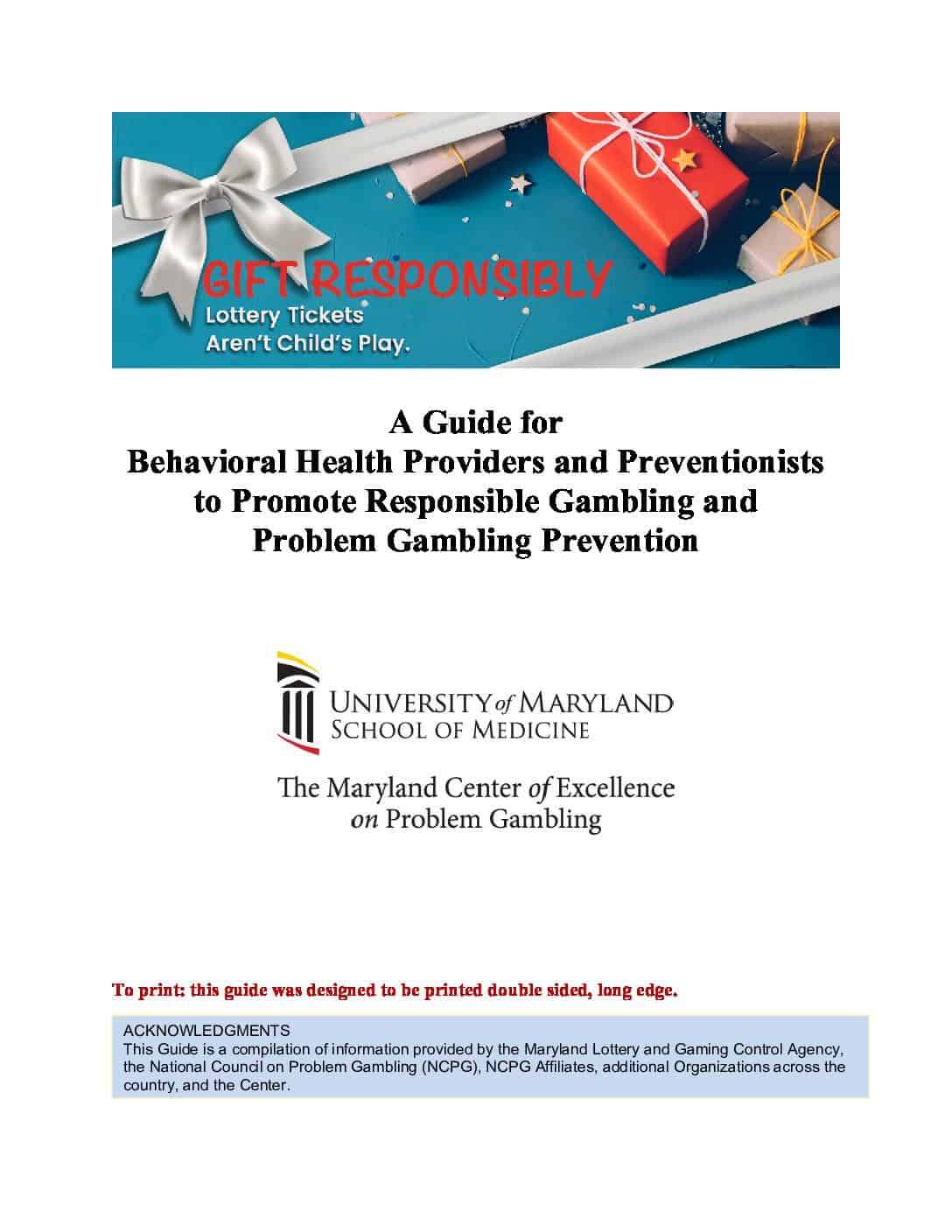 A Guide for Behavioral Health Providers and Preventionists to Promote Responsible Gambling and Problem Gambling Prevention